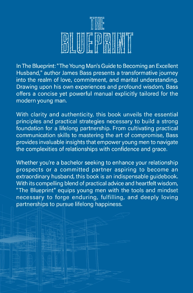 The Blueprint: The Young Man’s Guide to Becoming an Excellent Husband is not just a book—it’s a transformational roadmap for men ready to rise above the ordinary and embrace excellence in love, marriage, and commitment. Penned by award-winning author James Bass, this powerful guide distills years of lived experience and heartfelt wisdom into a clear, actionable path for today’s modern man.